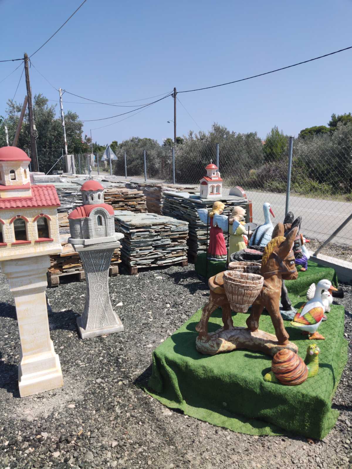 Διαθέτουμε, επίσης, χτιστά μπάρμπεκιου με φούρνο, τζάκια και διακοσμητικά κήπων